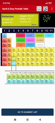 This Free app allows you to easily understand and memorize the chemical elements with complete information of elements including chemical element symbol atomic number atomic weight period group block and their detail information.