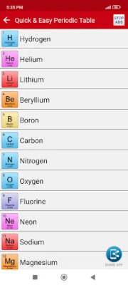 App provides an easy way to learn and memorize those things that would be difficult with the simple text books. App is useful for all the middle and high school chemistry students.