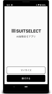 このアプリは、身体のサイズをお測りするものではございません。SUIT SELECTのスーツの型紙とスタッフのお勧めのサイズ感をAIが学習し、