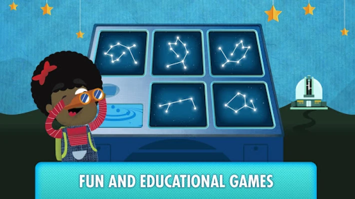 • With dozens of educational games: build a space rocket, dress an astronaut, learn the names of the planets, follow the stars of the constellations, etc.